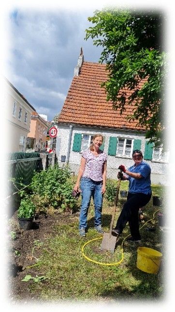 Die Vorbereitungsarbeit wurde von Hubert Neff, Wilfried Schimmel und Mike Stotko schnell erledigt und am 26. Mai setzten Barbara Altmannshofer, Sylvia Bednarz und Mary-Ann Stotko die gespendeten Pflanzen in der Erde ihres neuen Heims ein. Das Ergebnis macht Freude.